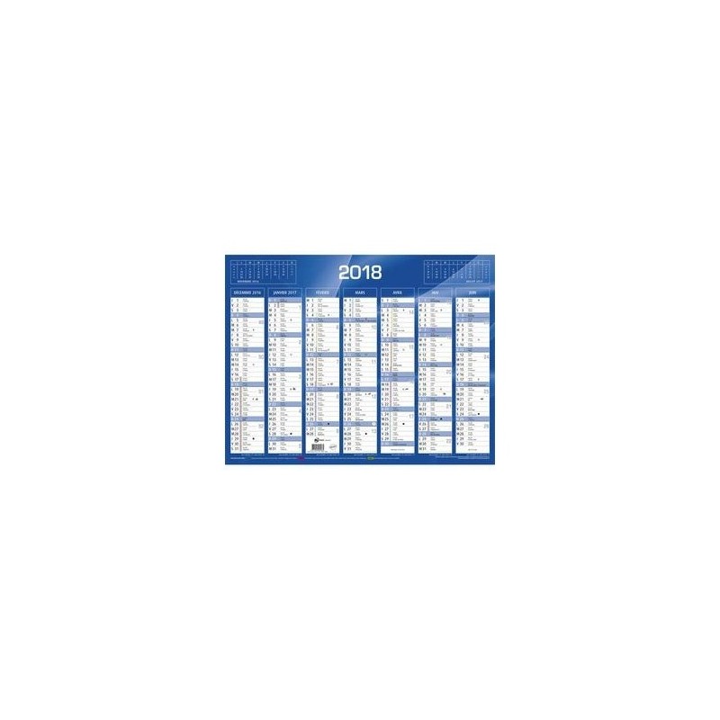 QUO VADIS Calendrier de 7 mois par face avec vacances scolaires en haut, format 55 x 40,5 cm coloris bleu