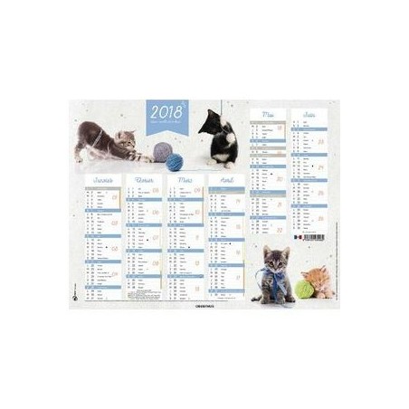 OBERTHUR Calendrier Chaton Pelote, 14 mois, décembre à juin, juillet-janvier, format 43 x 33,5 cm