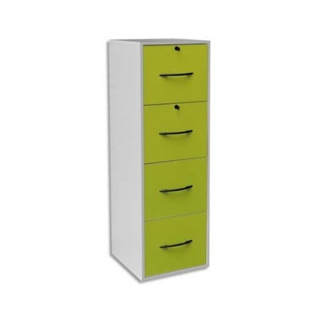 MT INTERNATIONAL Classeur mélaminé 4 tiroirs dossiers suspendus corps blanc tiroirs vert - L42 x H133 x P44 cm