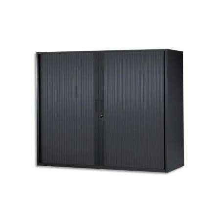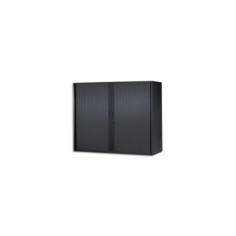 MT INTERNATIONAL Armoire basse métal monobloc Corps et Rideaux noir 2 tablettes - 120 x 105 x 43 cm