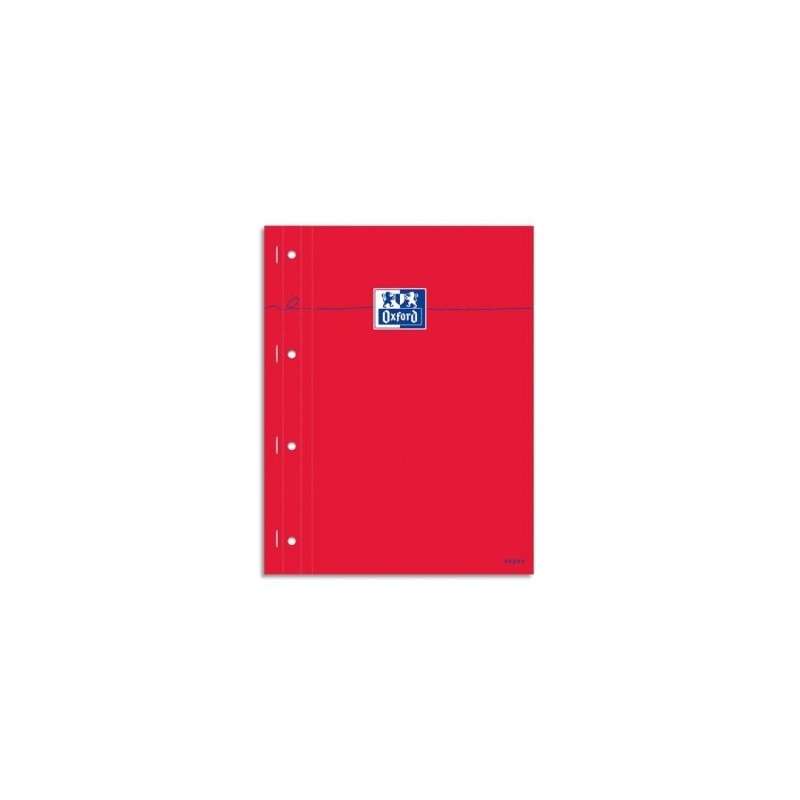 OXFORD Bloc étudiant agrafé côté 160 pages perforées 80g 22,5 x 29,7 cm seyès Couverture carte enduite rouge