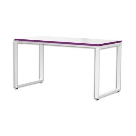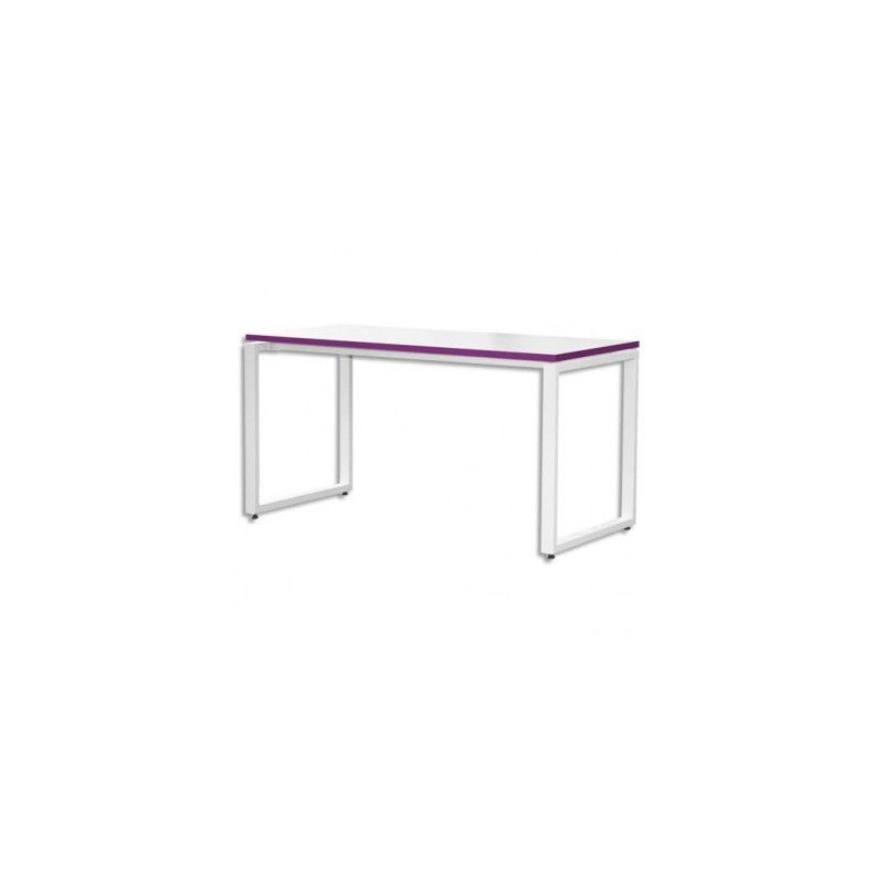 MT INTERNATIONAL Bureau MT1 élégance plateau blanc chant prune piétement blanc - Dim L120 x H75 x P67 cm