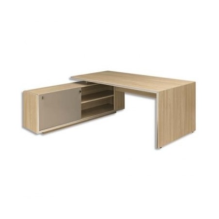 GAUTIER Bureau retour Gauche Vermont - Dimensions : L190 x H76/65 x P180/90 cm Chêne naturel Taupe