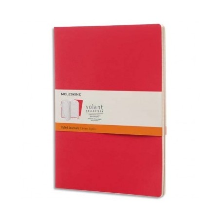 MOLESKINE Lot de 2 cahiers volants Très grand format 19 x 25 cm 96 pages lignées rouge géranium + rouge écarlate