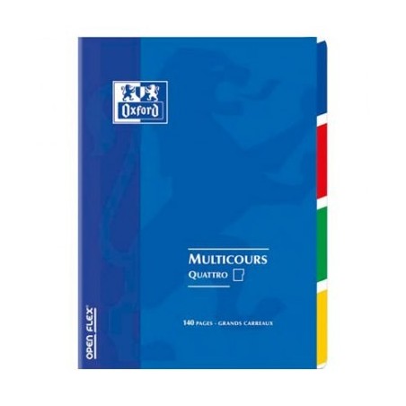 OXFORD Cahier QUATTRO (4 sections) OPEN FLEX piqûre 140 pages 24 x 32 cm Seyès, couverture polypropylène