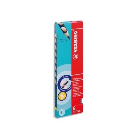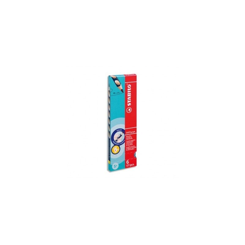 STABILO Crayons graphite EasyGraph, mine large spécial gauchers - En étui de 6 crayons