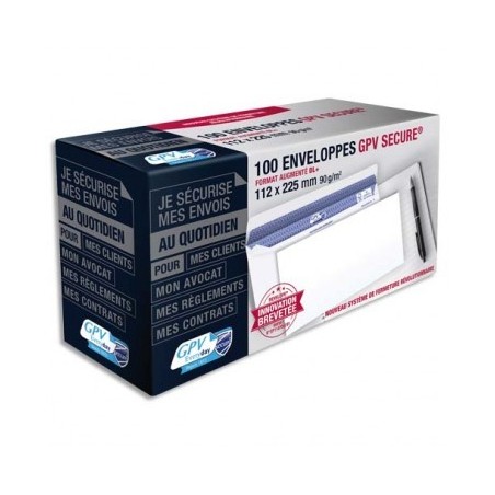 GPV Boîte de 100 enveloppes format DL+ 112 x 225 mm 90g SECURE fermeture auto-adhésive sans bande protectrice