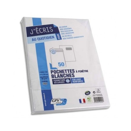 GPV Paquet de 50 pochettes vélin blanc auto-adhésives 90g format C4 229 x 324 mm fenêtre 50 x 100 mm