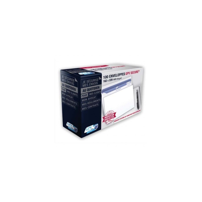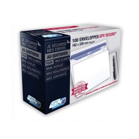GPV Boîte de 100 enveloppes format C5 162 x 229 mm 90g SECURE fermeture auto-adhésive sans bande protectrice