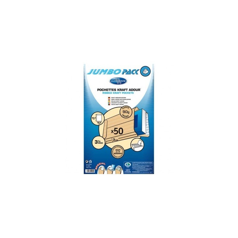 LA COURONNE Paquet de 50 pochettes kraft adour auto-adhésives 90 g 3 soufflets format 229 x 324 mm C4