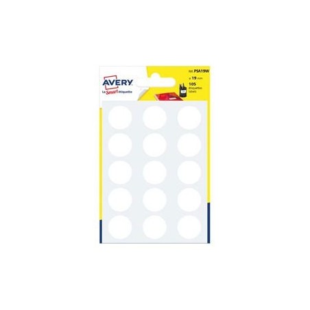 AVERY Sachet de 105 pastilles diamètre 19 mm. Ecriture manuelle. Coloris blanc