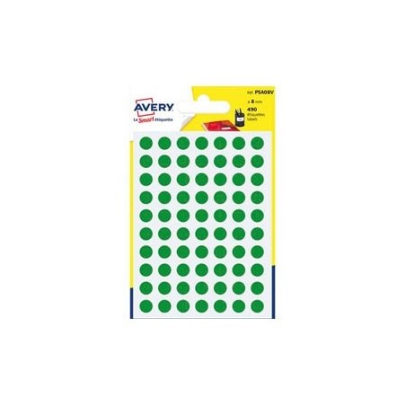 AVERY Sachet de 490 pastilles diamètre 8 mm. Ecriture manuelle. Coloris vert