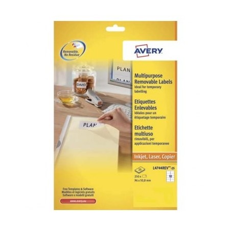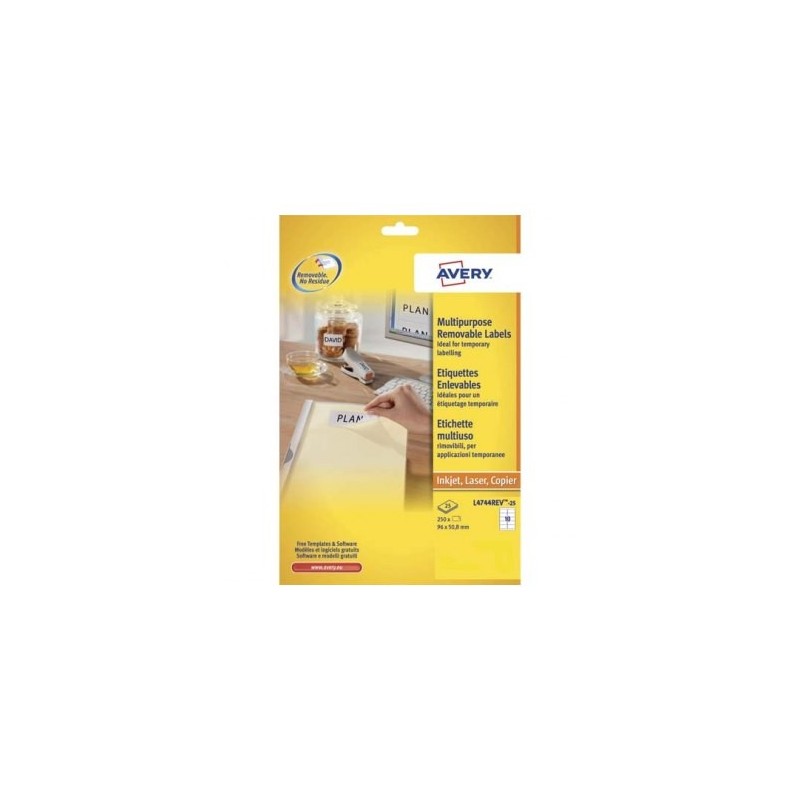 AVERY Boîte de 250 étiquettes laser enlevables 96 x 50,8 mm L4744REV-25