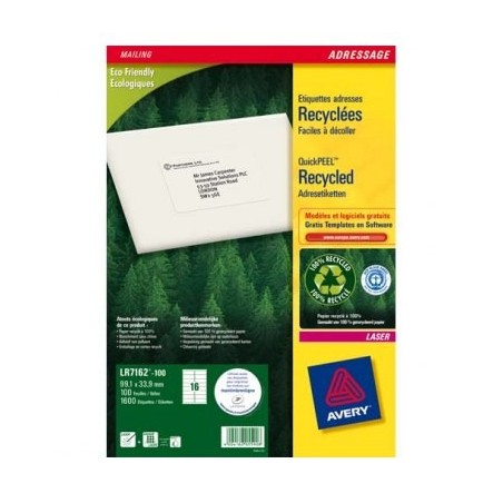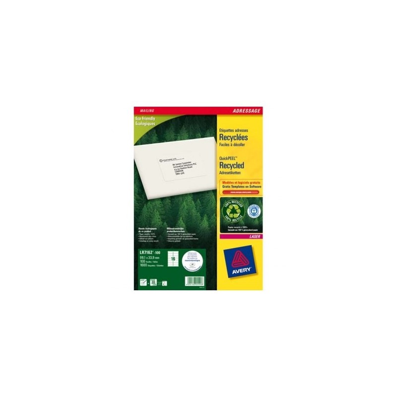 AVERY Boîte de 1600 étiquettes adresses laser recyclées blanc 99,1 x 33,9 mm LR7162-100