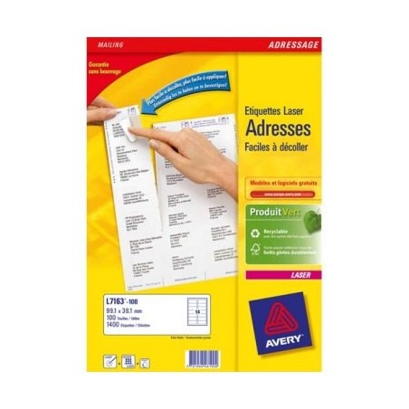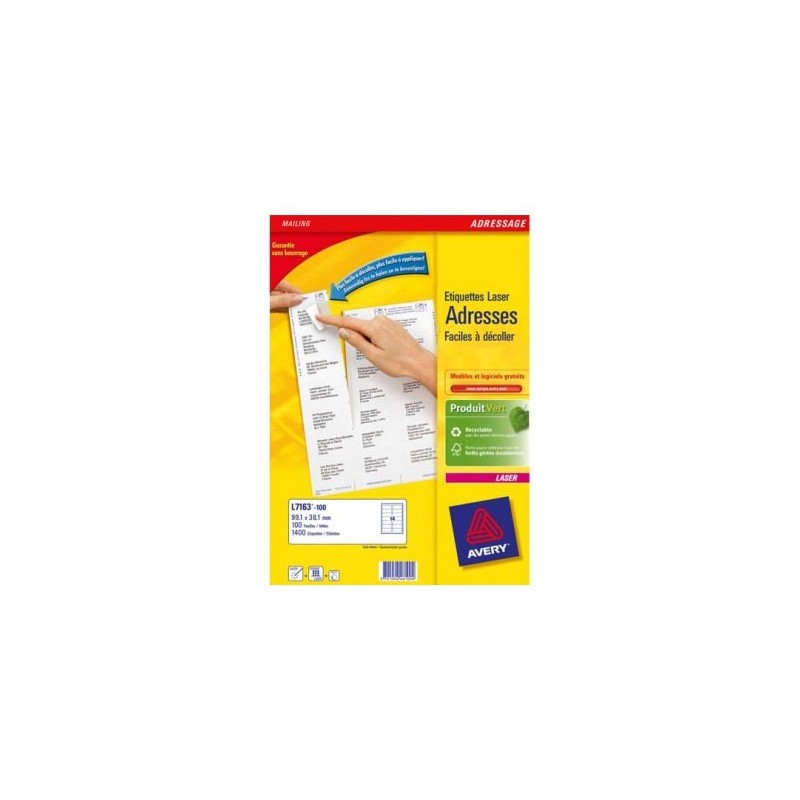 AVERY Boîte de 1400 étiquettes adresses laser recyclées blanc 99,1 x 38,1 mm LR7163-100
