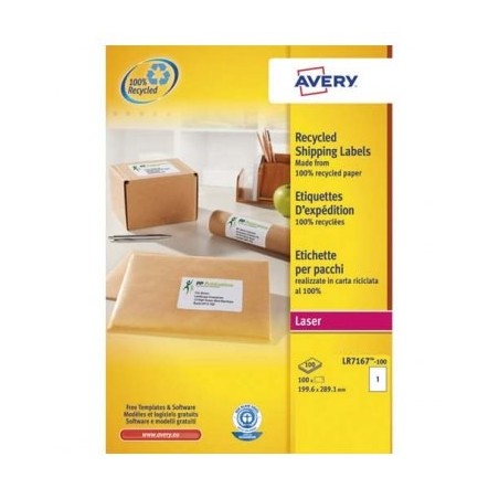 AVERY Boîte de 100 étiquettes adresses laser recyclées blanc 199,6 x 289,1 mm LR7167-100