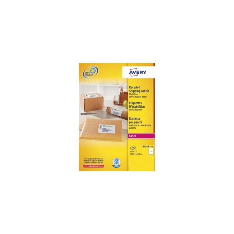 AVERY Boîte de 200 étiquettes adresses laser recyclées blanc 199,6 x 143,5 mm LR7168-100