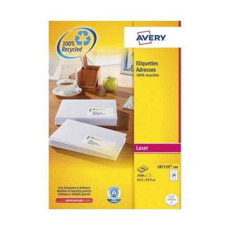 AVERY Boîte de 2400 étiquettes adresses laser recyclées blanc 63,5 x 33,9 mm LR7159-100