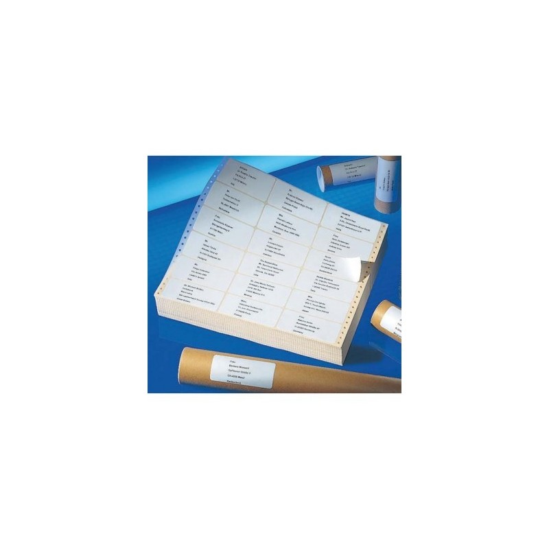 En vélin blanc, adhésif permanent. Stabilité et aptitude à l’impression. Offre un bon repliage des paravents. Utilisation possible sur une grande variété de supports. Pour imprimante à impact.