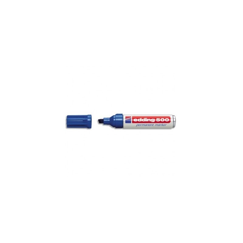 EDDING Marqueur Edding 500 permanent, corps aluminium, pointe biseautée - coloris bleu