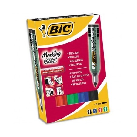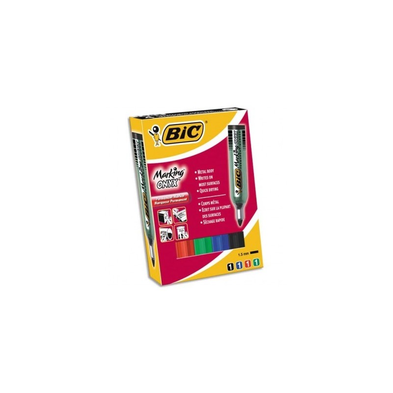BIC Etui de 4 marqueurs permanent pointe ogive corps métal encres assorties indélébile ONYX MARKER 1482