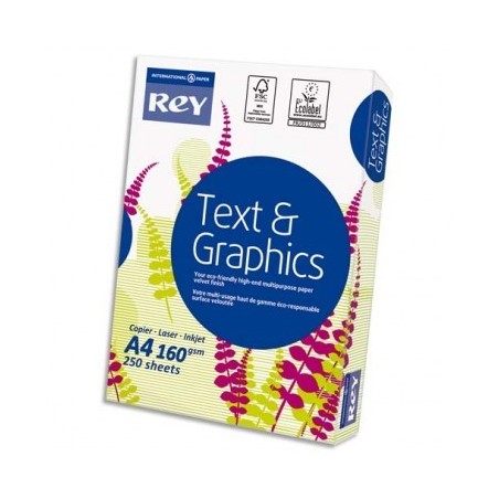 REY BY PAPYRUS Ramette de 250 feuilles papier blanc TEXT AND GRAPHIC PAPER copieur, laser, jet d’encre 160g A4