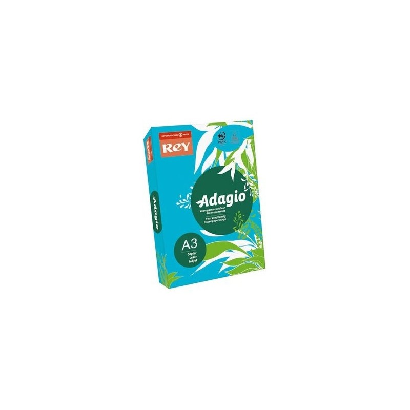 REY BY PAPYRUS Ramette de 250 feuilles papier couleur ADAGIO copieur, laser, jet d’encre 160g format A3 bleu vif