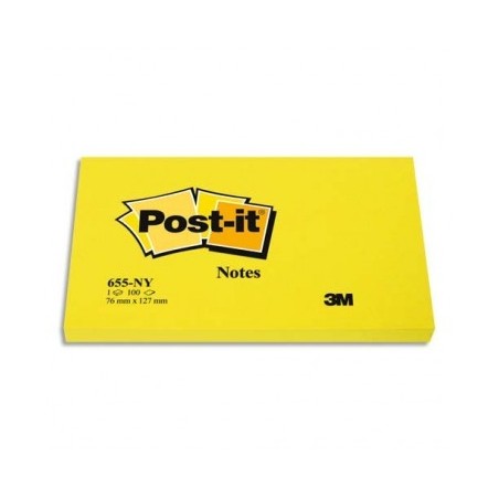 POST-IT Bloc néon repositionnable de 100 feuilles 76 x 127 mm jaune