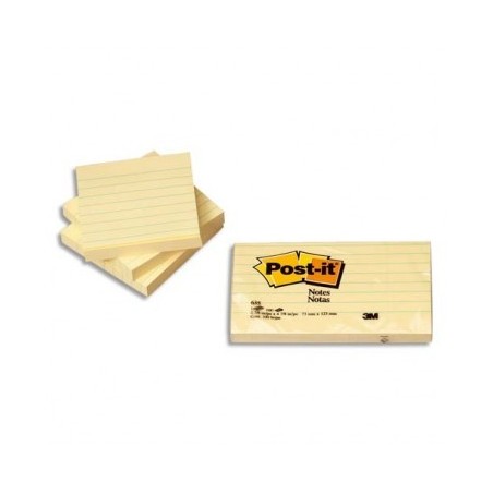 POST-IT Bloc repositionnable de 100 feuilles 76x127 mm jaune ligné