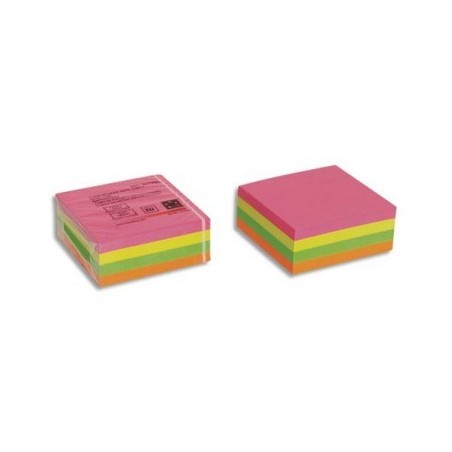 Bloc cube 320 feuilles. Dimensions : 7,6 x 7,6 cm. Couleurs néon : jaune, fuchsia, orange, vert. Jaune ou couleur !