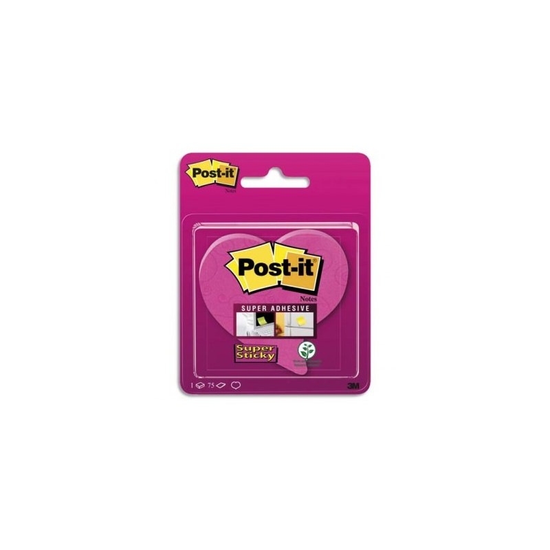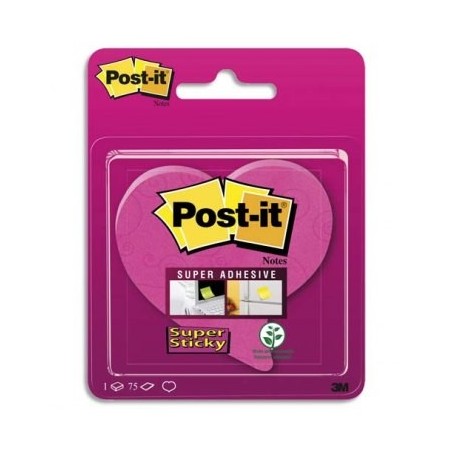 POST IT Blister de 1 bloc notes Super Sticky rose Cœur de 75 feuilles