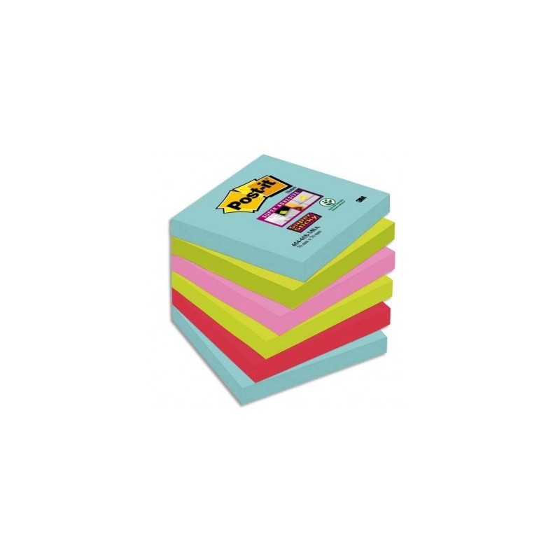POST-IT Lot de 6 blocs notes Super Sticky Post-it® Collection MIAMI 76 x 76 mm, 90 feuilles