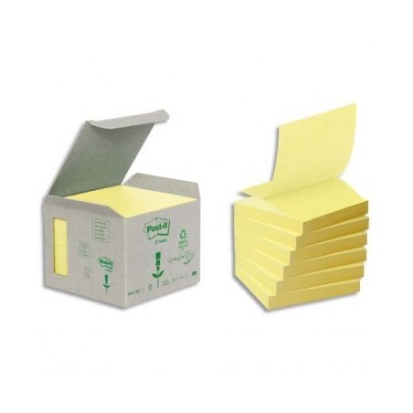 POST-IT Tour 6 blocs Z-notes 100 feuilles 76x76 mm 100% recyclé. Coloris jaune