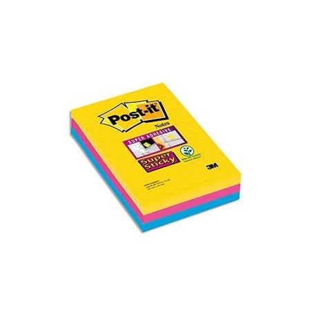 POST-IT Lot de 3 blocs 90 feuilles Super Sticky RIO lignées 101 x 152 mm assortis