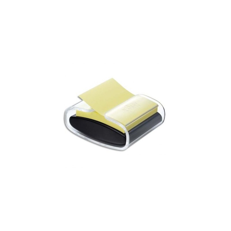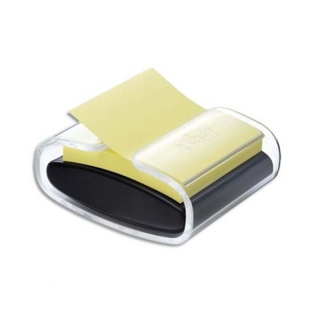 Dévidoir Z-Notes Post-it lesté rechargeable. Livré avec 1 bloc Z-Note 76 x 76 jaune Super Sticky. Dévidoir Z-Notes Pro Noir.