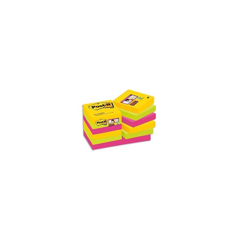 POST-IT Lot de 12 blocs Super Sticky Rio 90 feuilles 4,76 x 4,76 mm - Coloris assortis