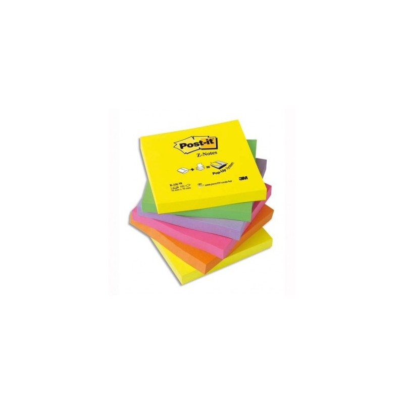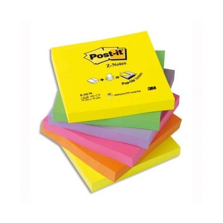 POST-IT Lot de 6 Recharges Z-notes 100 feuilles 7,6 x 7,6 cm coloris néon assortis