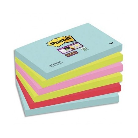 POST-IT Lot de 6 blocs notes Super Sticky Post-it® Collection MIAMI 76 x 127 mm, 90 feuilles