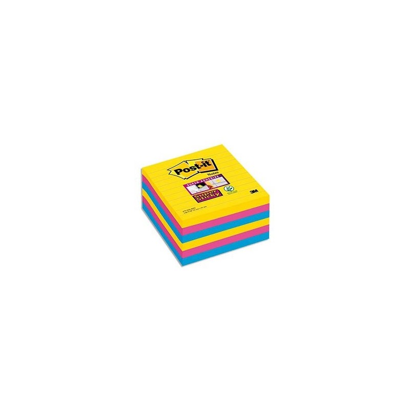 POST-IT Lot de 6 blocs 90 feuilles Super Sticky RIO lignées 101x101 mm assortis
