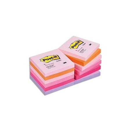 POST-IT Lot de 12 blocs repositionnables coloris PLAISIR dimensions 76x76 mm