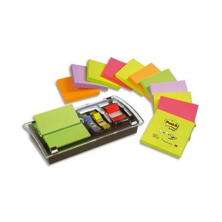 POST-IT support Millenium + 12 blocs Z-notes 7,6x7,6 cm coloris néon + 1 carte 10 index standard 2,54 cm