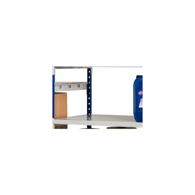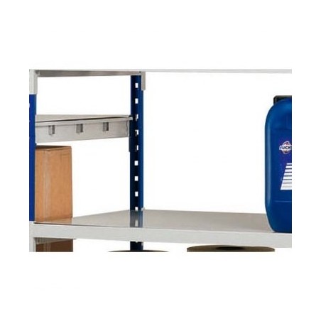 Structure en acier 12,5/10ème finition époxy bleu avec pied métal perforé pour une éventuelle fixation au sol. 3 tablettes claires voies en acier 10/10ème finition époxy gris, composées de longerons de section 40 x 20 épaisseur 10/10ème, et d’équerres 12/10ème, blocage par goupille de sécurité. Fixation des tablettes par connecteurs 3 griffes. Tablettes réglables tous les 5 cm, charge utile : jusqu’à 300 Kg par tablette. Livré à plat, montage facile par simple emboîtement. Possibilité d’ajouter un ou plusieurs éléments pour constituer des rayonnages illimités. Hauteur : 200 cm. Options : 1 tablette claire voie supplémentaire, lot de 3 plaques métal et lot 3 plateaux Isorel. 2 modèles : profondeur 60 cm ou 80 cm. Idéal pour les ateliers et les réserves !