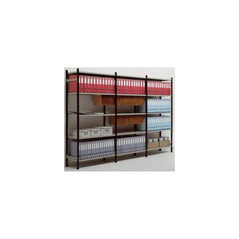 Système prêt à monter sans vis ni boulons. Evolutif (éléments de départ et suivants), il s’adapte à des besoins de configuration très divers. Le système exclusif d’accrochage de la tablette assure la rigidité et la stabilité du rayonnage. Tablettes en tôle 7/10e, réglables en hauteur tous les 2,5 cm. Coloris gris. Montants finition peinture époxy, coloris anthracite. Traverses latérales de renforts. Charge : 100 kg par niveau. Comprend 6 tablettes, 2 montants et 2 traverses. Un rayonnage à vos mesures !
