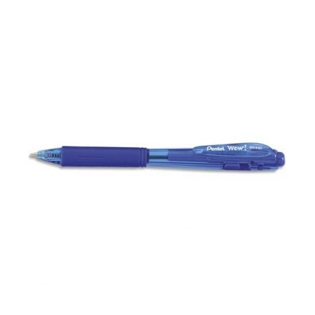 PENTEL Stylo bille WOW rétractable, pointe large, grip caoutchouc, encre bleue