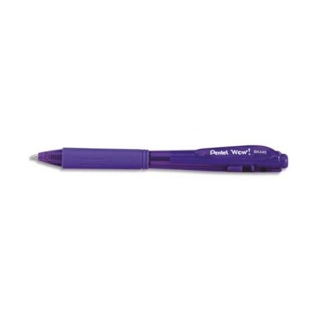 PENTEL Stylo bille WOW rétractable, pointe large, grip caoutchouc, encre violette