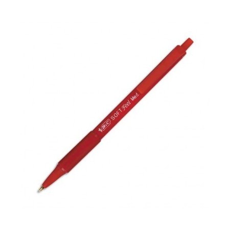 BIC Stylo à bille pointe moyenne rétractable encre rouge corps caoutchouc anti-fatigue SOFT FEEL CLIC