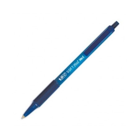 BIC Stylo à bille pointe moyenne rétractable encre bleue corps caoutchouc anti-fatigue SOFT FEEL CLIC