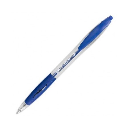 BIC Stylo à bille rechargeable pointe moyenne rétractable encre bleue corps transparent et grip ATLANTIS